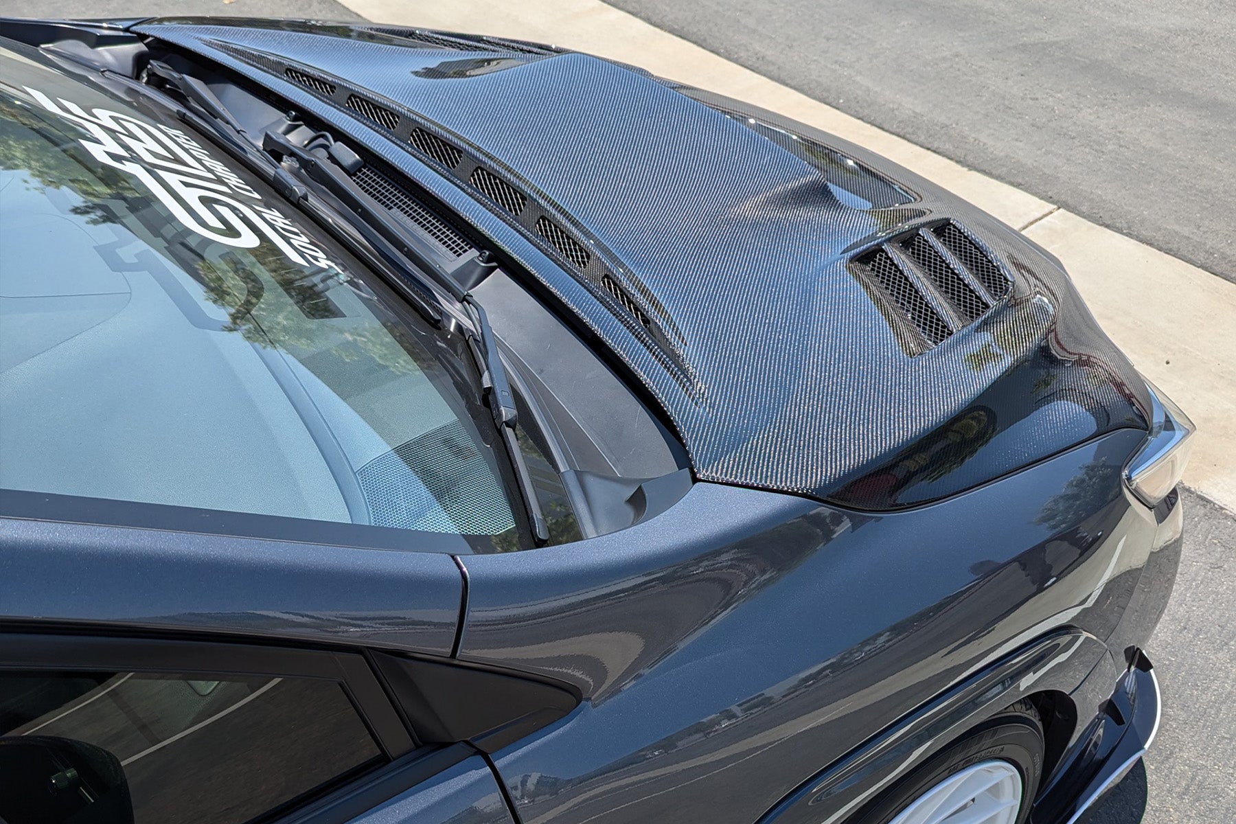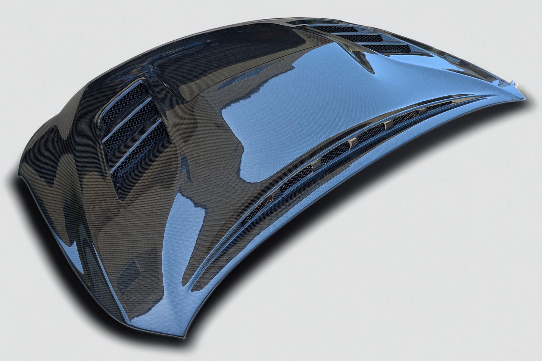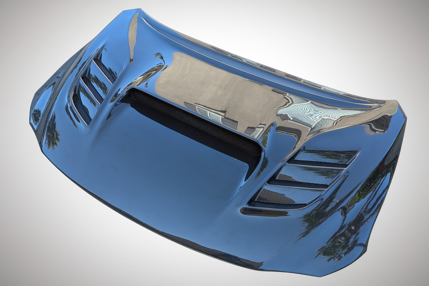 Each VIS Carbon Fiber Hood and trunk begins with a rigorous two-part construction process. The outer layer, composed of high-quality carbon fiber, is securely bonded to the hood’s surface using premium epoxy resin. This bond not only holds firmly but also reinforces the overall structure. The surface is then coated with Poly Shield, a clear, UV-protective polyurethane finish that provides a brilliant high-gloss shine, enhancing both the hood's aesthetic appeal and durability.
