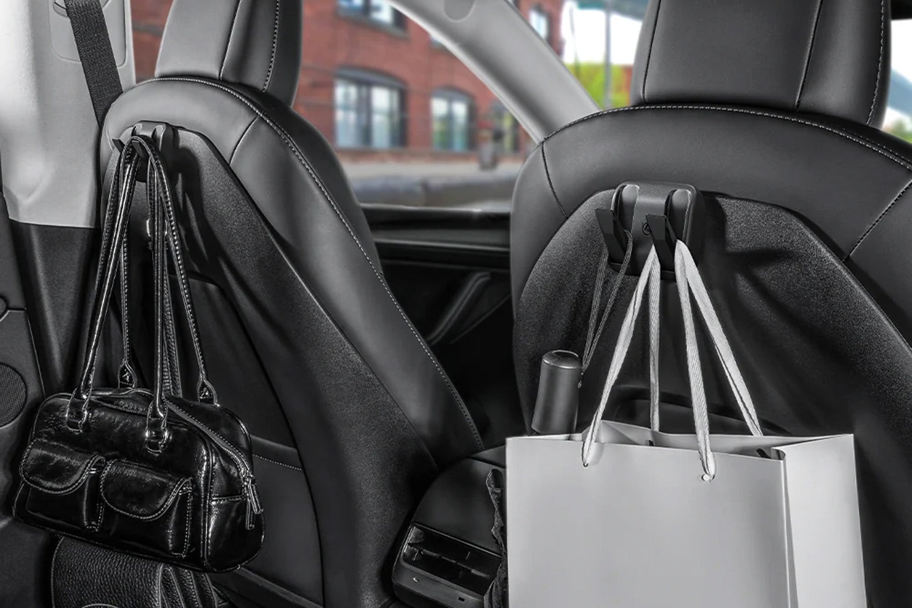 The HALOBLK car seat back hooks for all Tesla models are designed to enhance storage and organization in the vehicle. These hooks attach securely to the seat back cover of the passender and driver seat, allowing you to hang bags, groceries, or other items, helping keep the interior tidy. They’re made for easy installation and crafted to match the Tesla's aesthetic, providing a functional, sleek solution for daily storage needs.