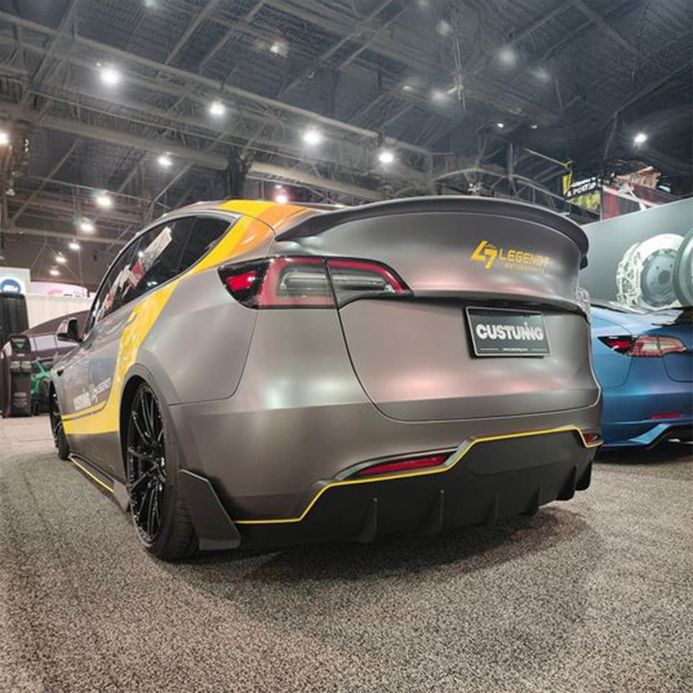 The CUSTUNING Tesla Model Y rear diffuser is made from Polypropylene (PP) thermoplastic, and was engineered for easy installation with excellent fitment. This is a complete OEM replacement upgrade that significantly transforms the look of your vehicle.