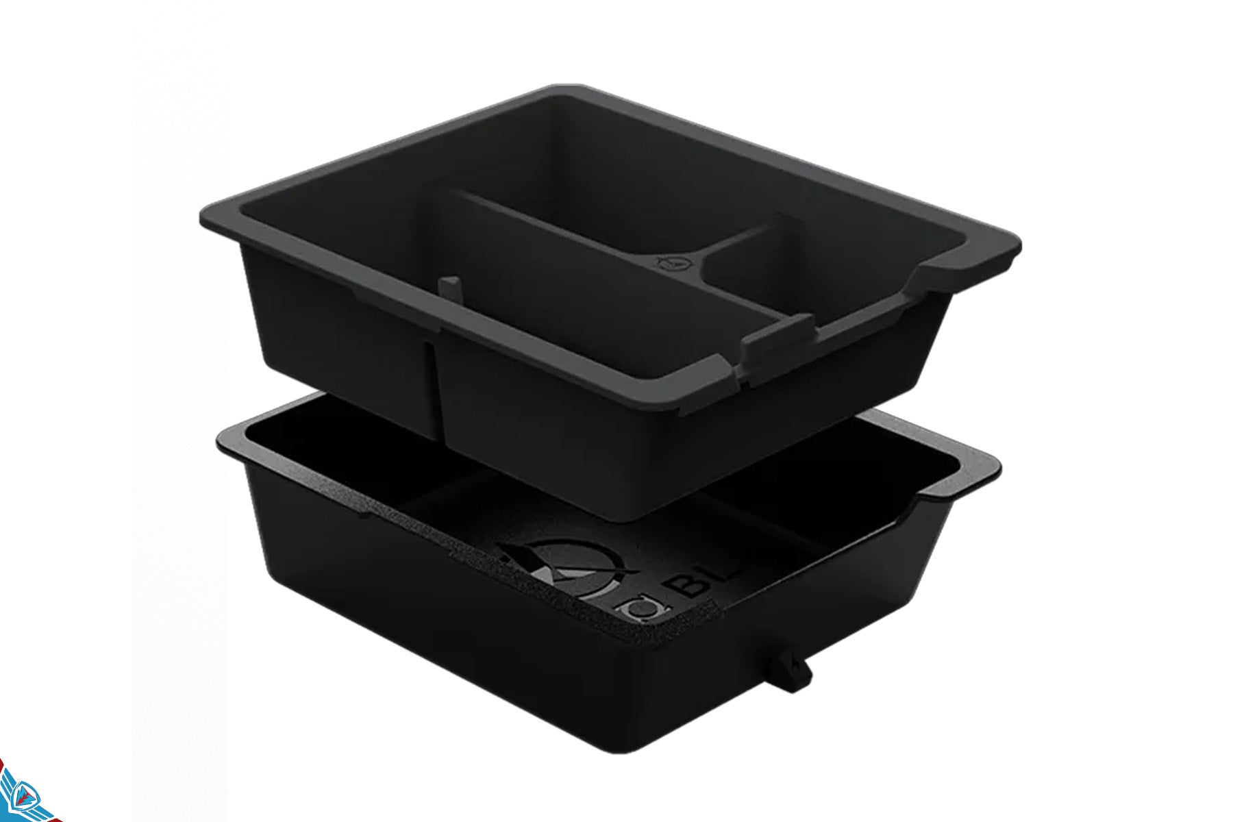 Take advantage of the available space in your center console with this uniquely designed sliding tray storage system from HALOBLK.